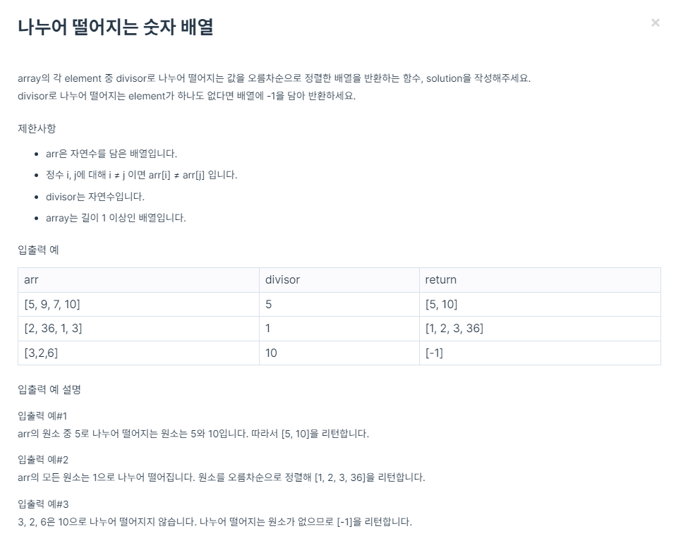 나누어 떨어지는 수들만 answer 리스트에 추가