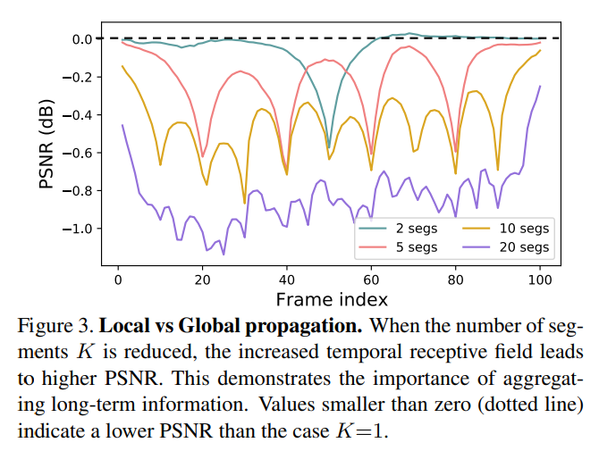 2) 각 segment의 양 끝은 PSNR수치가 좋지 않다: 긴 시퀀스는 long-term information이 축적되어야한다