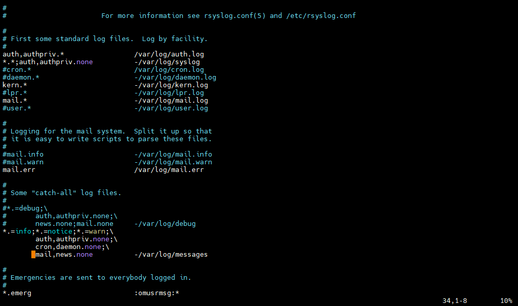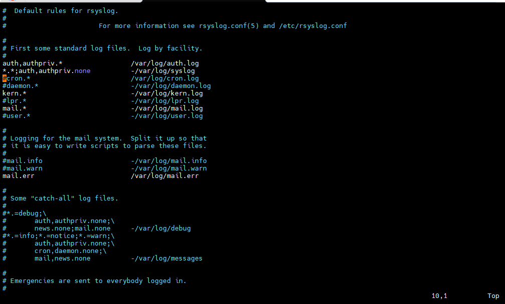 "우분투에서 10.x부터 syslog 데몬인 rsyslogd에 무개를 실어감으로 인해 디폴트 값으로 /var/log/messages가 주석처리 되어있더군요."