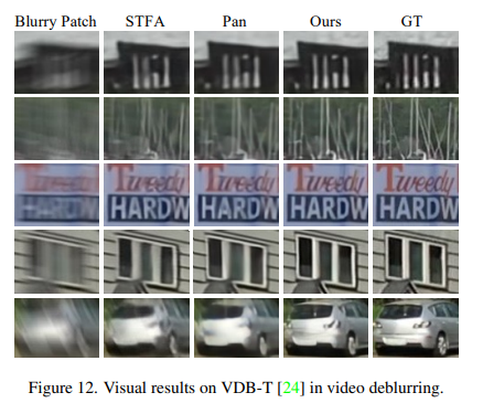 - Video deblurring dataset (VDB): 61 training and 10 testing video pairs. Each pair contains a blurry and sharp videos.