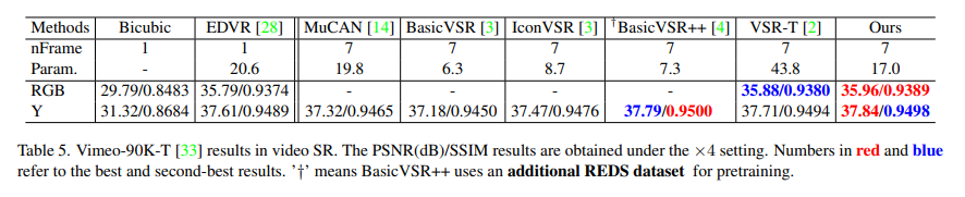 - REDS: 266 training, 4 testing, 100-frame sequences with resolution 1280 × 720