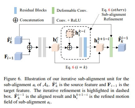 2. Sub-alignments는 이전에 align한 features뿐 만 아니라 pre-estimated motion field의 영향도 받는다