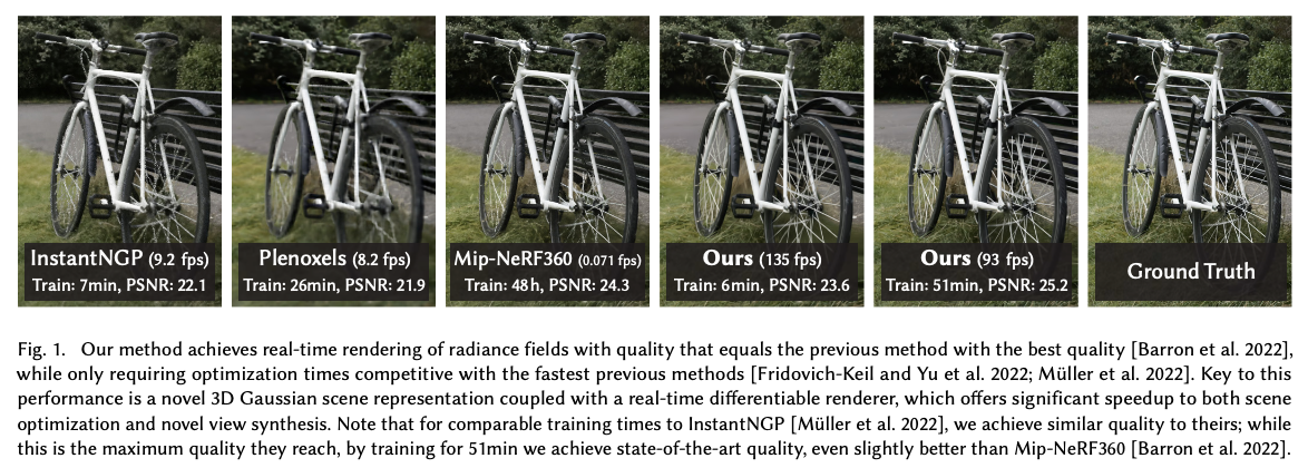 Kerbl, Bernhard, et al. "3D Gaussian Splatting for Real-Time Radiance Field Rendering." ACM Transactions on Graphics 42.4 (2023).