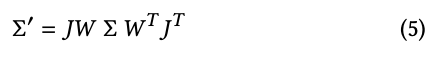 - $J$: 투영 변환의 야코비안(Jacobian)이며, 이는 선형 변환의 근사를 나타낸다